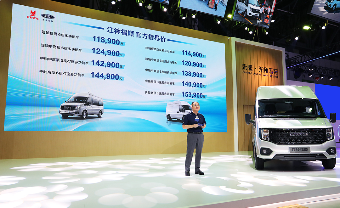 8月26日成都车展开幕,江铃福特展台以轻客专场迎来江铃福顺荣耀上市。江铃福顺是一款以"大空间+强动力","合资品质+自主价格"为特征,满足个体运输户、中小企业主对轻客产品的极致性价比需求的轻客新产品。