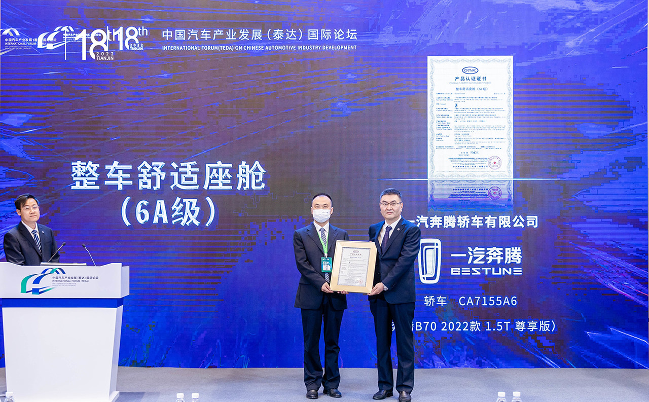 9月4日,中国汽车技术研究中心(简称“中汽中心”)新一批整车舒适座舱认证结果发布会,在2022中国汽车产业发展(泰达)国际论坛上成功召开,现场公布了该项认证升级为6大评价维度后的3款获证车型。其中,奔腾B70凭借全面越级的卓越舒适性,首批荣膺整车舒适座舱(6A级)认证荣誉,也是目前唯一、首款获此殊荣的轿车产品。值得一提的是,由于认证规则的“360度无死角”,自2021年该项认证实施以来,获证车型平均起售价高达28万元,作为一款价格亲民的国民家轿,奔腾B70首个获此殊荣,一方面彰显其产品实力,另一方面也将听-嗅-知-体-触-坐六维度舒适驾乘体验带给更多普通中国家庭用户。