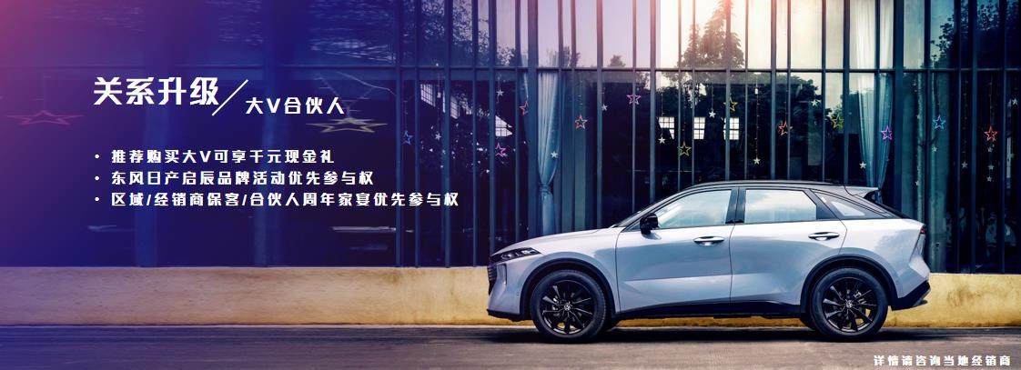 关系升级,构建温暖车主生态。为感恩回馈车主家人,东风日产启辰将继续推广大V合伙人制度,成为大V合伙人尊享三大权益,推荐购买大V可享现金礼、品牌活动优先参与权、周年家宴优先参与权等,进一步拉近车主与品牌的距离。