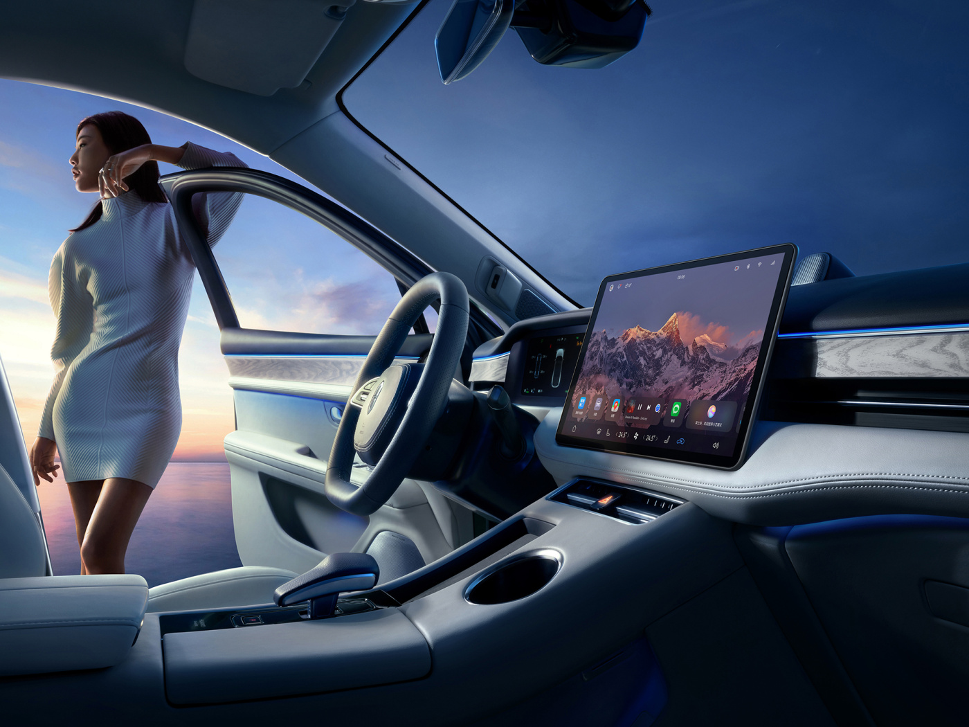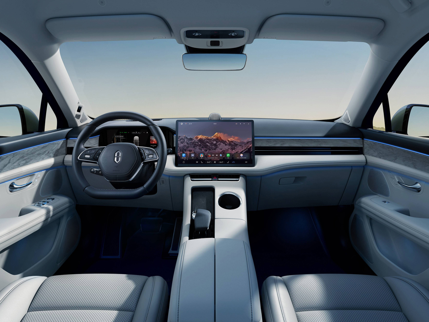 环抱式T型中控设计布局突显出问界M5 EV前卫智能的座舱风格。而在用料水准上,中控采用出平衡对称的木纹配饰源自于Nissha®的模外艺术,细节部分晶钻握档采用50面极致切削设计,突显出座舱该有的豪华格调。