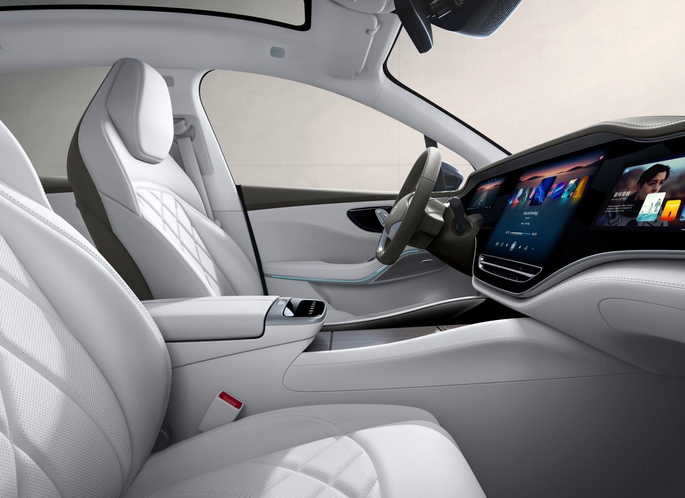 在前期宣传中,诸如3+1霸舱式巨幕、 首发量产的华为视觉增强AR-HUD平视系统、流媒体内后视镜、飞凡尊享副驾、无框感应式电开门/电吸门、支持换电技术等就让我们印象深刻。