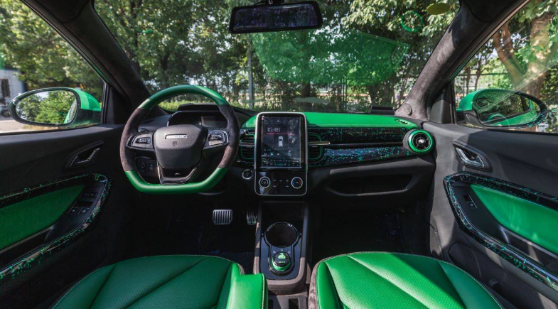 前保险杠采用了全新设计的星空扩散式格栅,并辅以两侧氛围灯光呈现出“X”形状,刻画出ICONIC SPACE家族全新的改装设计风格。侧裙采用双色撞色的设计,与前保险杠相互衔接,在视觉效果上大幅度降低了视觉重心,营造出车身侧面运动帅气的低趴姿态感。而后保险杠也“换装”了全新运动化的改装包围,与前脸的改装设计相呼应。另外车尾两侧氛围灯也融入了ICONIC SPACE家族化特征,增加辨识度。其他设计元素方面,车尾辅以后尾箱装饰罩加以点缀,突显出设计多元的层次感。另外,运动电动升降尾翼的出现,在两厢微型车当中算是“独一份儿”,而这也让整台车看起来更酷炫。 除了外观设计的趣改以外,内饰座舱的改装设计同样极具亮点。首先在仪表、座椅、门板、方向盘等多处融入了个性化元素的包裹。细节之处采用国家非遗产品星空漆艺饰件和定制光门槛踏板加以点缀。另外,按键和旋钮式按键也采用了全新的个性化定制,并且车内氛围灯光,包含壁灯、顶灯等多处光源也经过了定制设计,进一步提升了改装个性的氛围感。