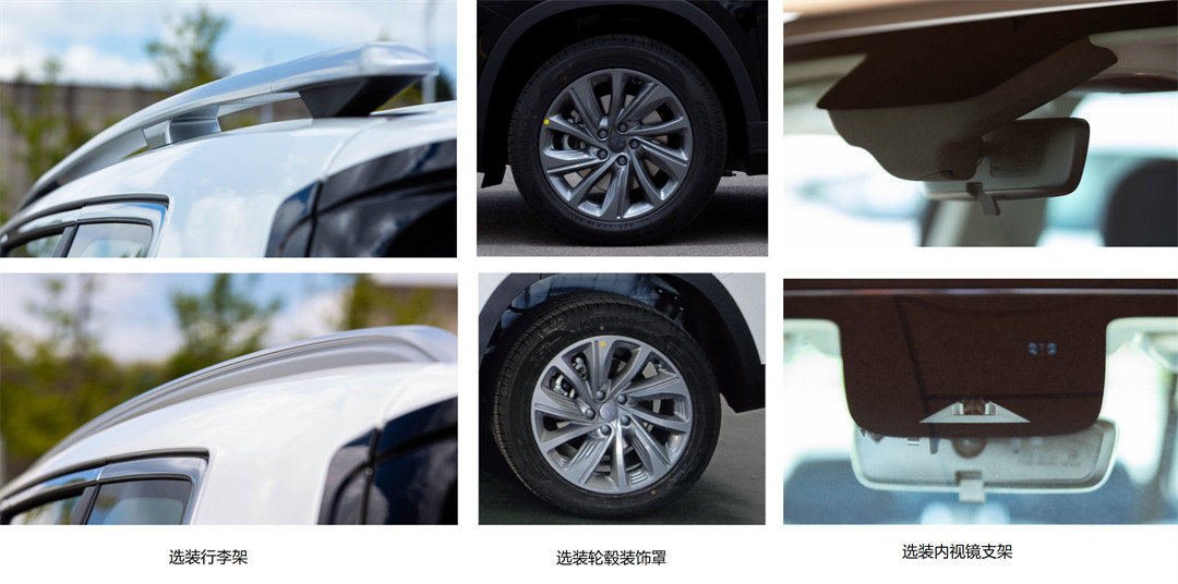 选装配置方面,新车可选装的配置并不多,配有车顶行李架、轮毂装饰罩以及内视镜支架等配置,可选装配置少这意味着很可能新车标配项就已经很好地满足消费者的日常用车场景,有入门即高配的体验。