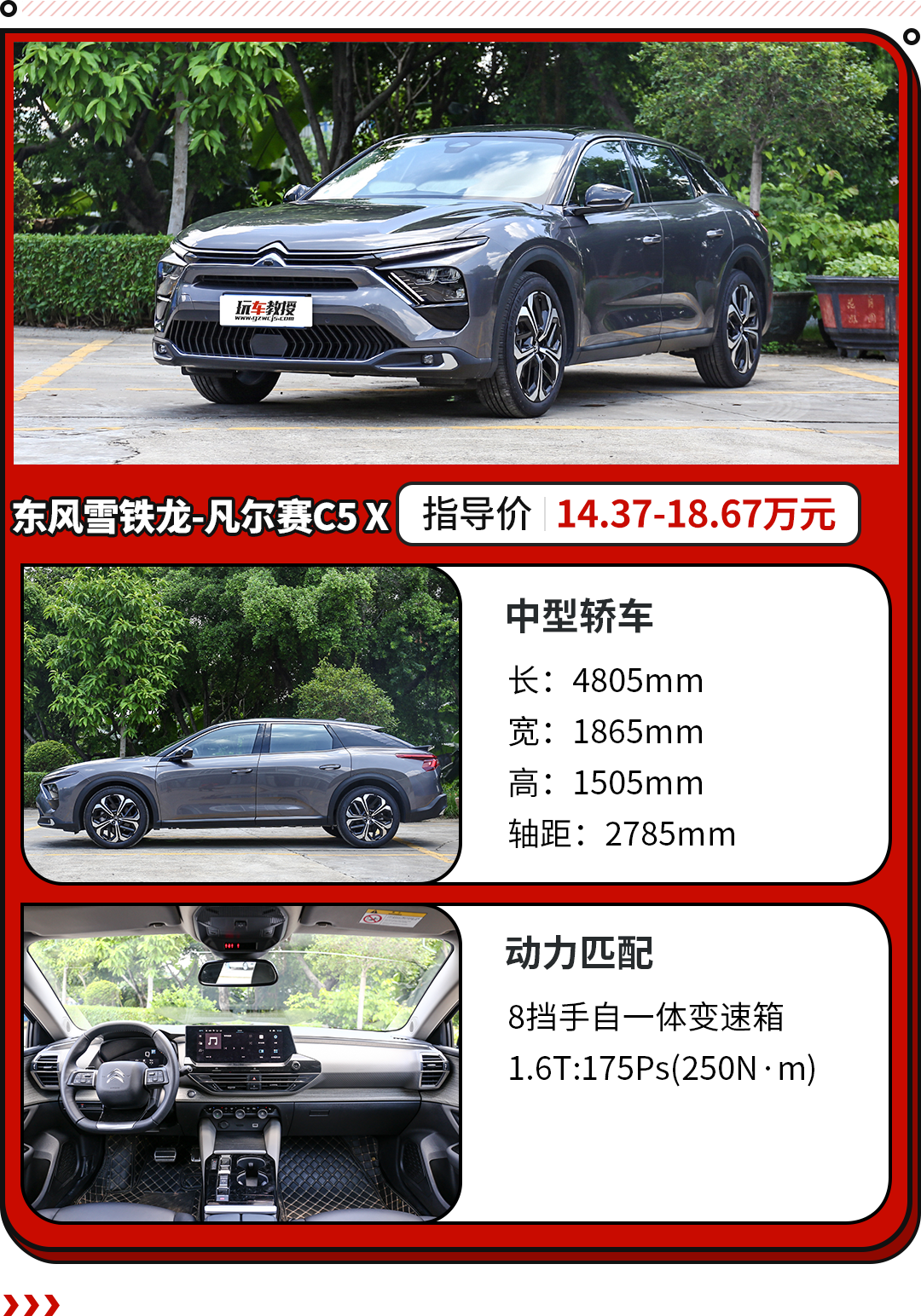 2021年9月,东风雪铁龙凡尔赛C5 X在国内正式上市,作为一款全球战略车型,凭借大胆创新的设计理念,跨界车的风格,吸引无数年轻消费者,而其入门即高配的配置、全系1.6T+8AT的动力总成,以及14.37万元的起售价,成为当时最火爆的中型轿车之一。