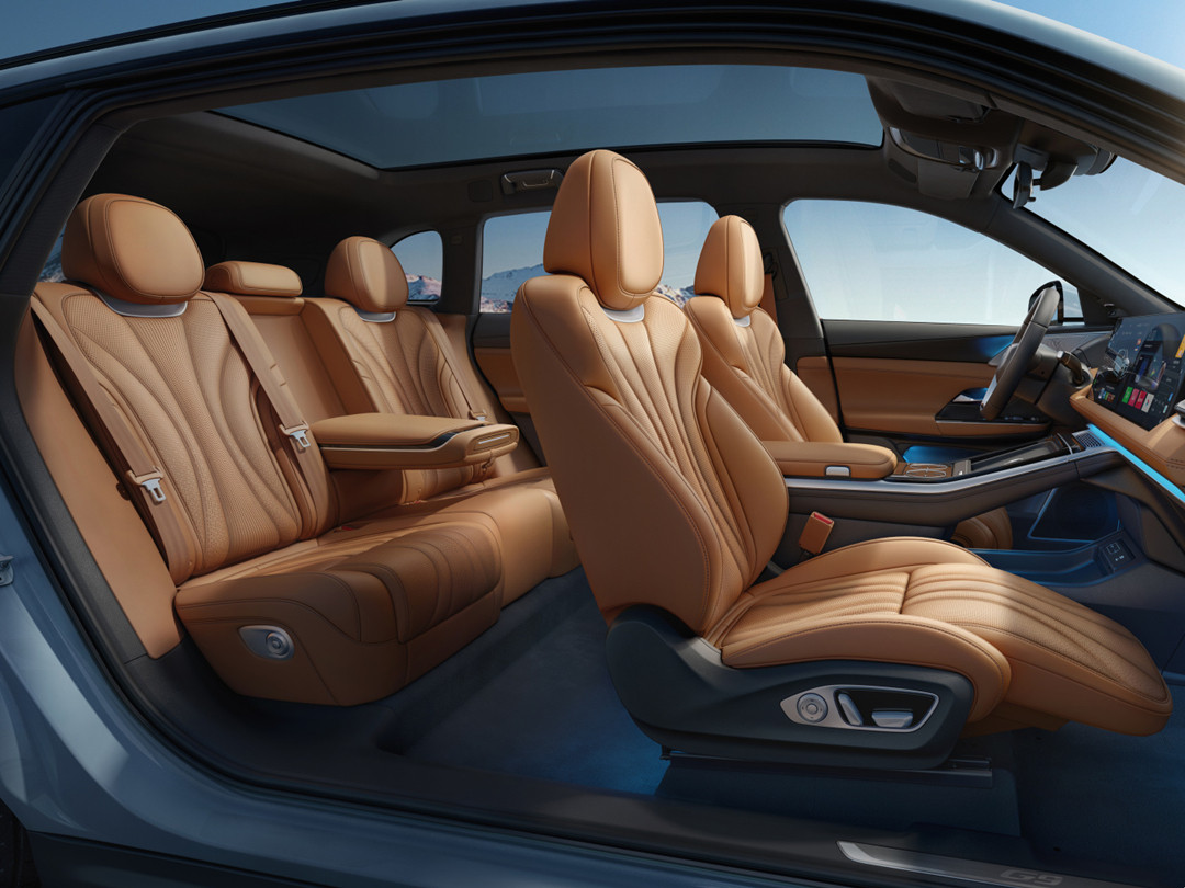 作为小鹏的旗舰车型,G9定位中大型SUV,虽然是大5座的布局,不提供6、7座,但车身尺寸却没减。既然载得人少,那自然要在其他体验上表现得更好了。