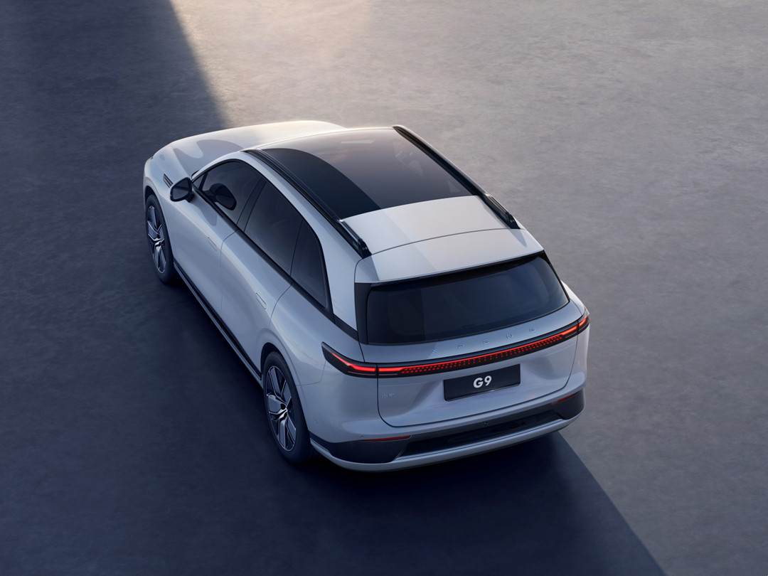 四驱由175kW前异步+230kW后同步电机组成。综合功率高达551Ps、717N·m,0-100km/h的加速时间仅3.9秒,8种驾驶模式可以让动力100%给前驱或后驱,也就是说G9甚至能漂移。