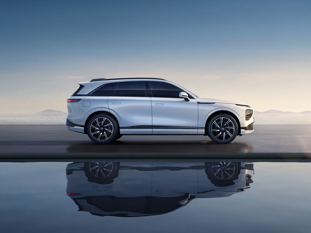 大灯位置整合了激光雷达,车门依然拥有无框设计,高配还带电吸功能,车顶的行李架融合了5G天线。21英寸双色的多辐条轮毂大气又动感,上面隐藏的螺丝既美观还能降低风阻。