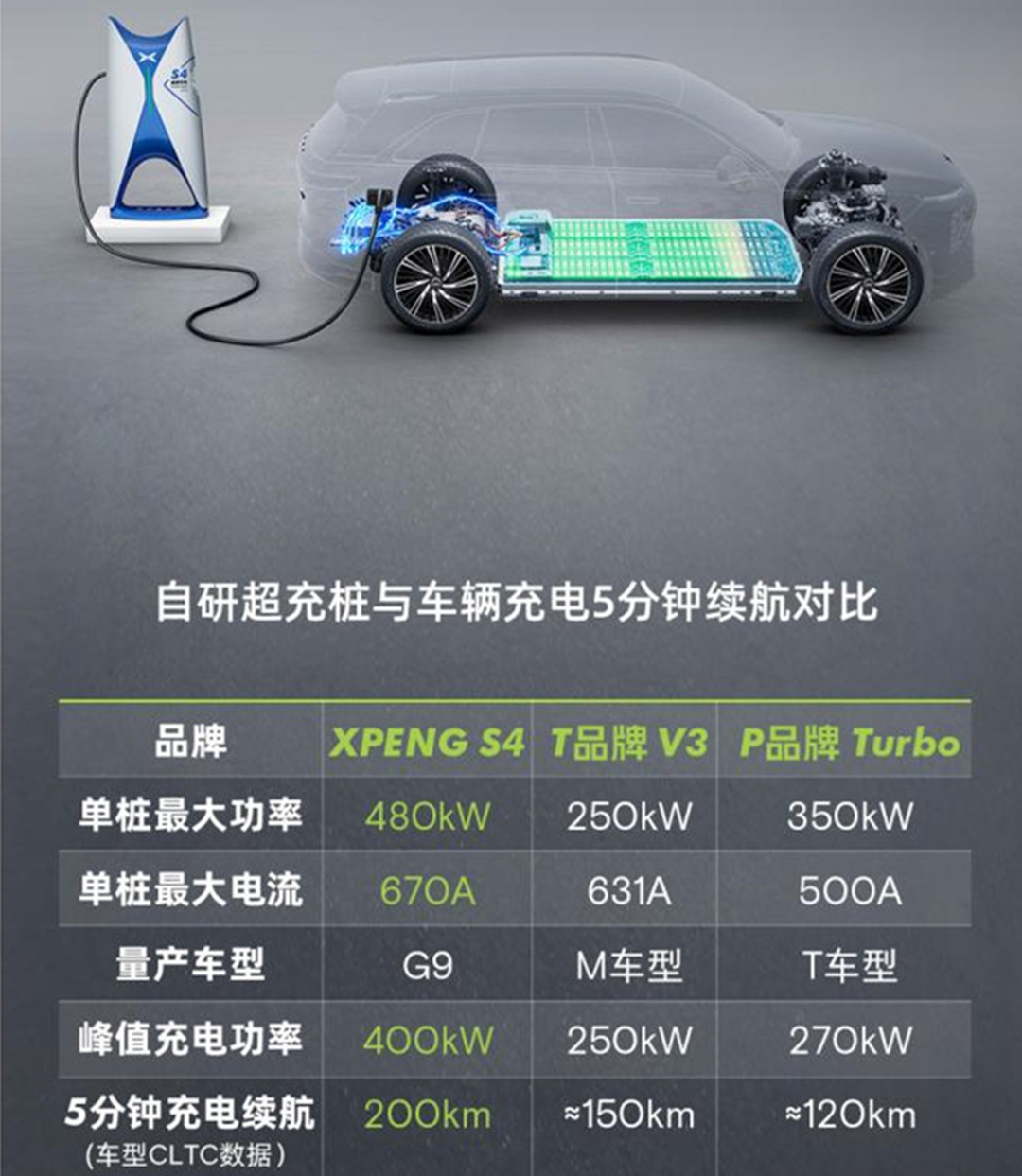 充电配合自家的S4超充桩,5分钟就有200km续航,电量从10%充到80%只要15分钟,比一般的超充快不少。且G9的平均电耗仅有16kWh/100km,与自家轿车的表现接近。