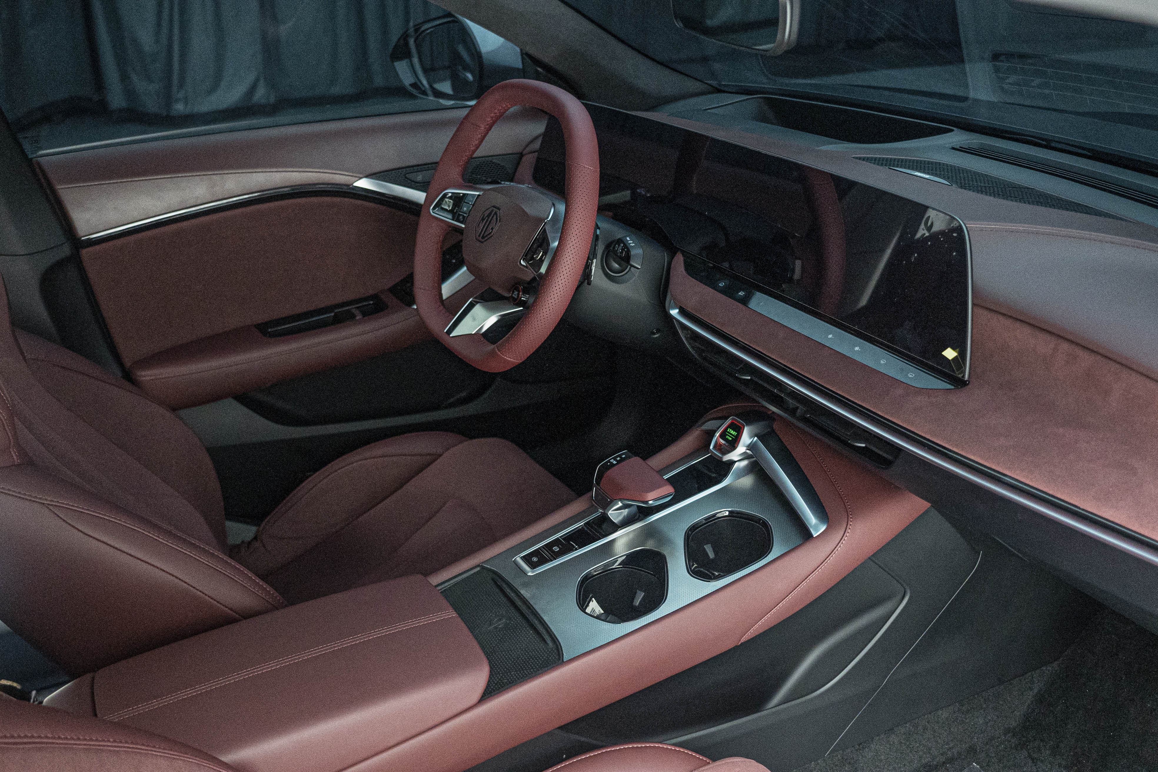 这次是MG7首次公开内装拍摄,也就是说荧幕前的你是少数见过MG7内装的其中一员,它的内装设计强调整体感,而非刻意营造专注驾驶的感觉;非对称造型元素是MG7彰显不凡格调的特点。