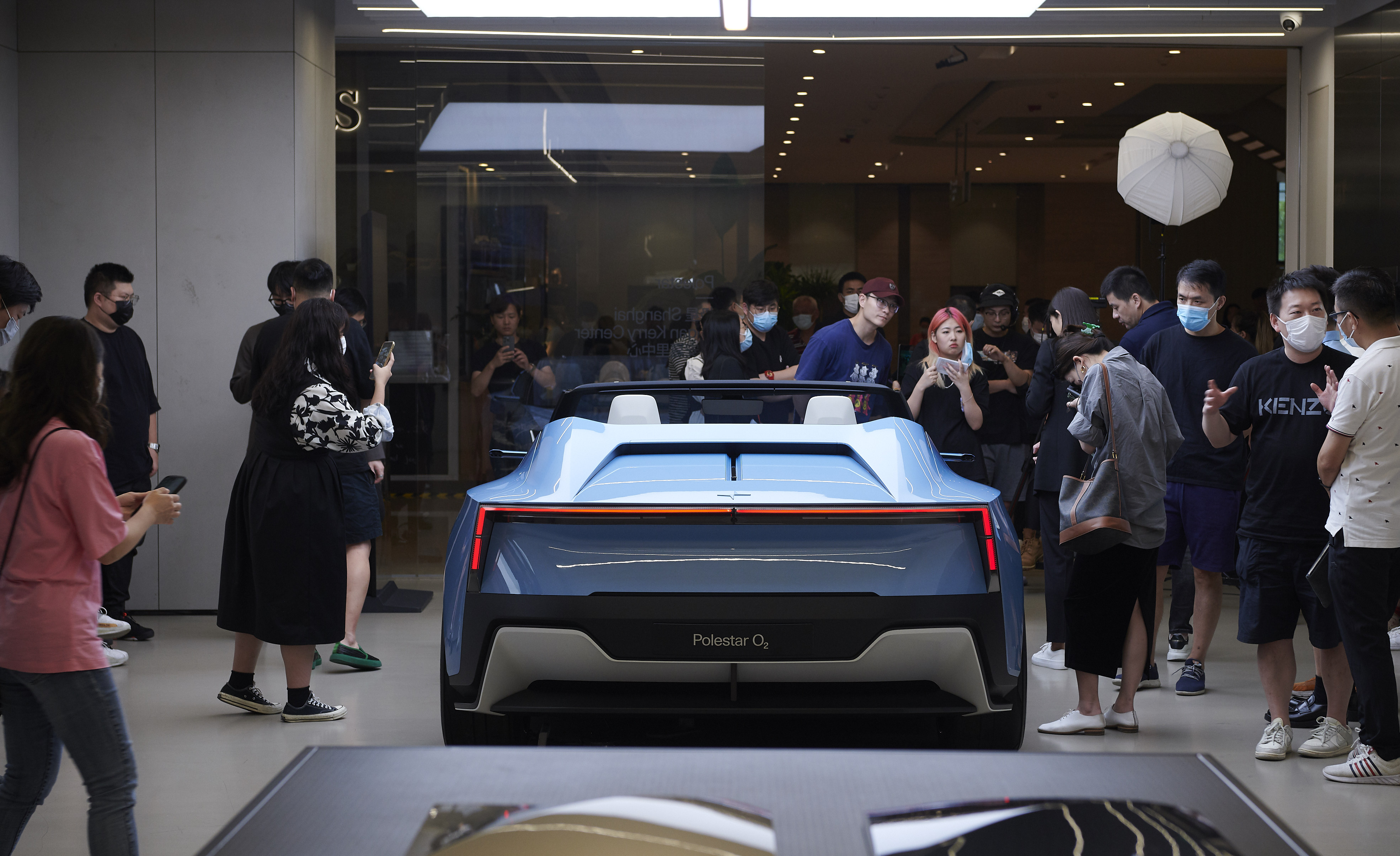 这不Polestar 3将在2022年10月全球首发话音刚落,Polestar 6就迎来了首场中国上海的首秀,它们将展车停放在静安嘉里中心商城里的Polestar展厅,而在这个充满设计感的门面里Polestar 6在里头就显得有些绝世而立一样。