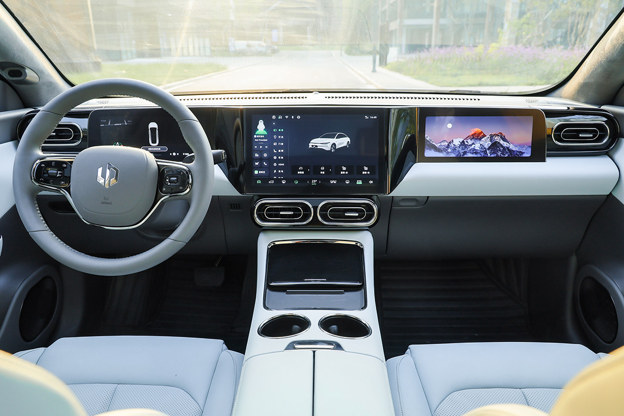 内饰也是家族化设计,整体布局和零跑C11保持一致,采用了三屏智能座舱布局。科技感不弱,但是对零跑品牌熟悉的朋友来说,少了点新鲜感。