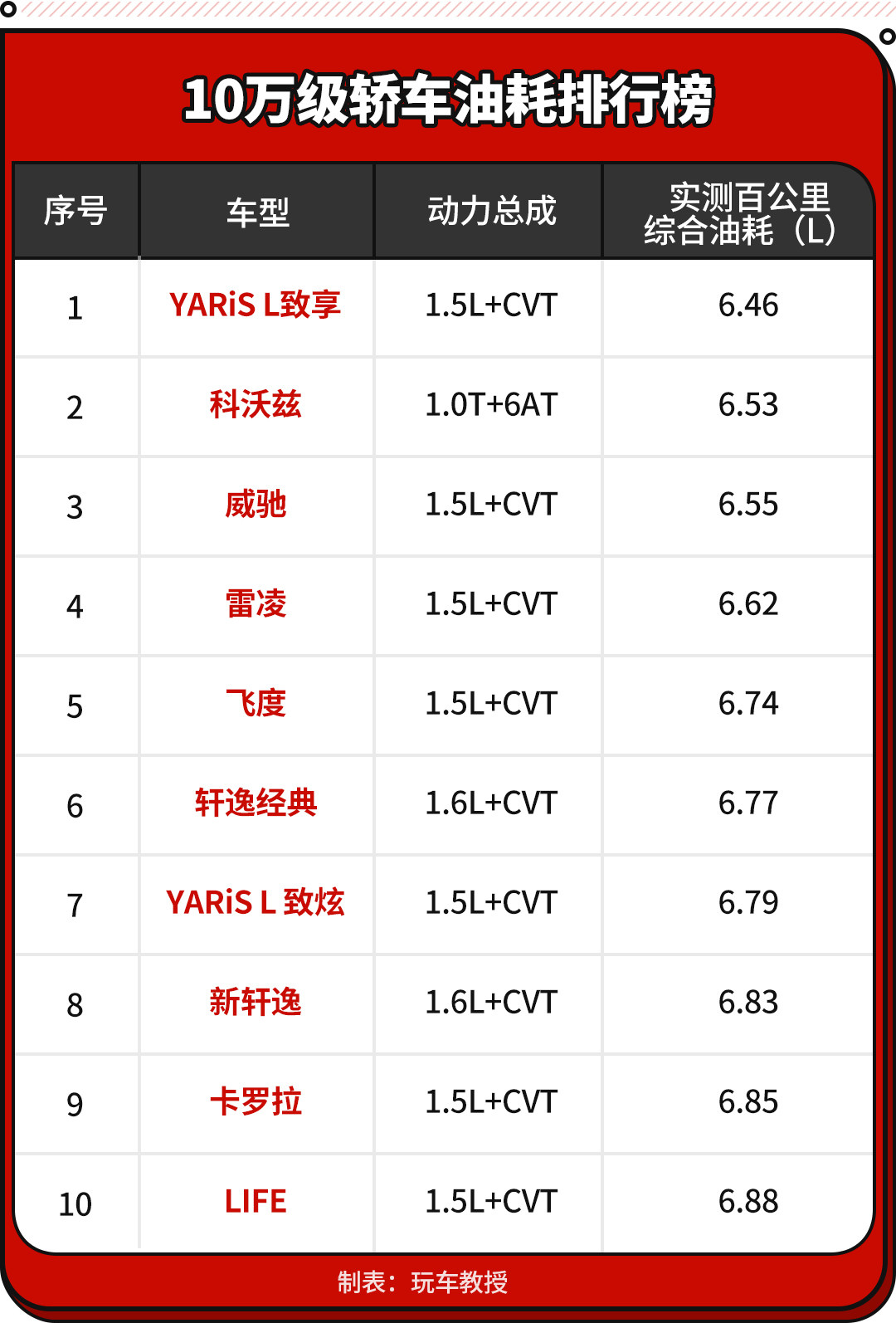 10万级的车型多是主流的小型车或入门级的紧凑型车,这些车型基本上都是在国内市场摸爬滚打多年,有着很高的知名度,而且作为经济型轿车,其燃油经济性往往也是最大的卖点之一。因此,正是注重油耗的消费者的称心之选,如果您在购车时有类似的考虑,可以参考一下。