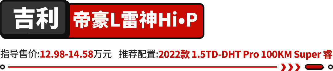 具体到吉利,其推出了自己的雷神智能混动平台,并全面应用于吉利、领克等品牌车型上。其中,吉利的雷神混动平台有HEV混动和PHEV插电式混动两种类型,在吉利品牌雷神智擎Hi·X下面,HEV混动车型被称为“Hi·F”,PHEV插电式混动车型被称为“Hi·P”。很显然,帝豪L雷神Hi·P属于后者。该车也是中国品牌新一代插混技术(还包括比亚迪DM-i、长城DHT-PHEV、长安iDD混动等)的代表产品之一了。