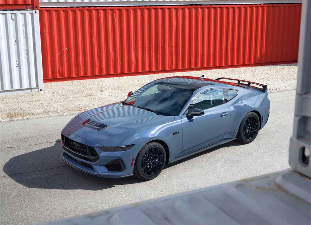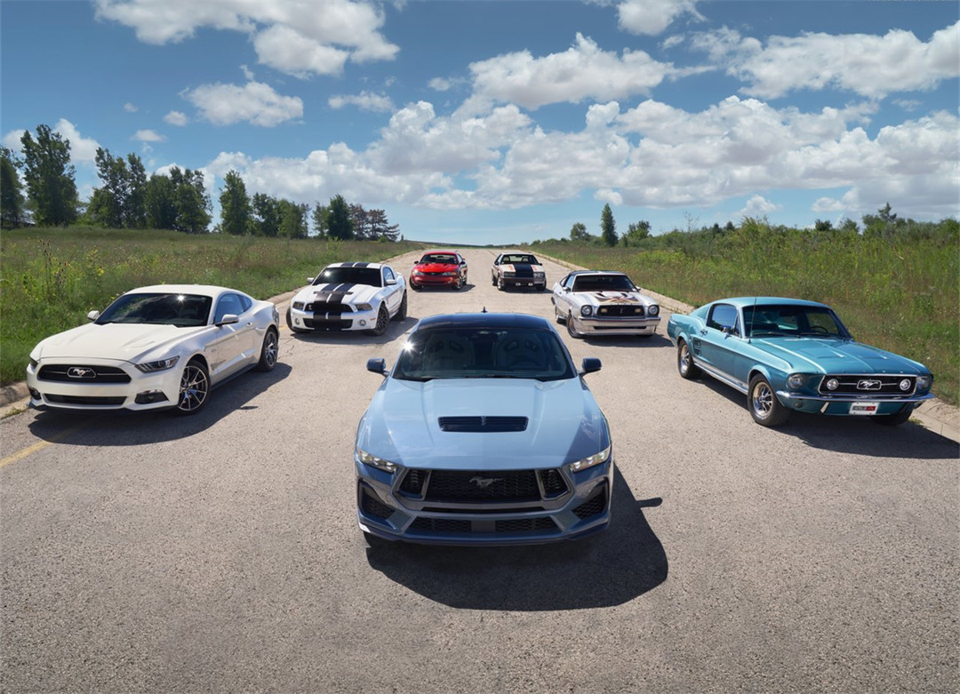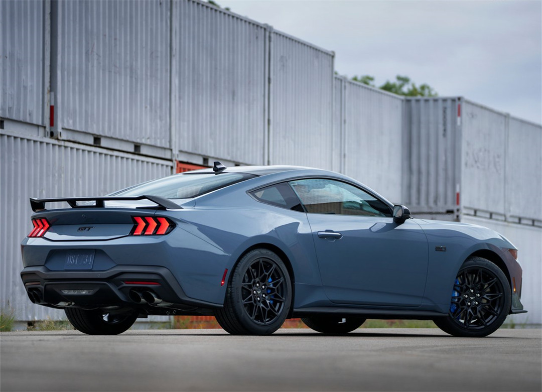 全新Mustang拥有多达11款车身颜色,蒸汽蓝和黄色飞溅是新的。车的造型轮廓与老款十分相似,基于前作的成功,新车的确不宜做大刀阔斧的改动。