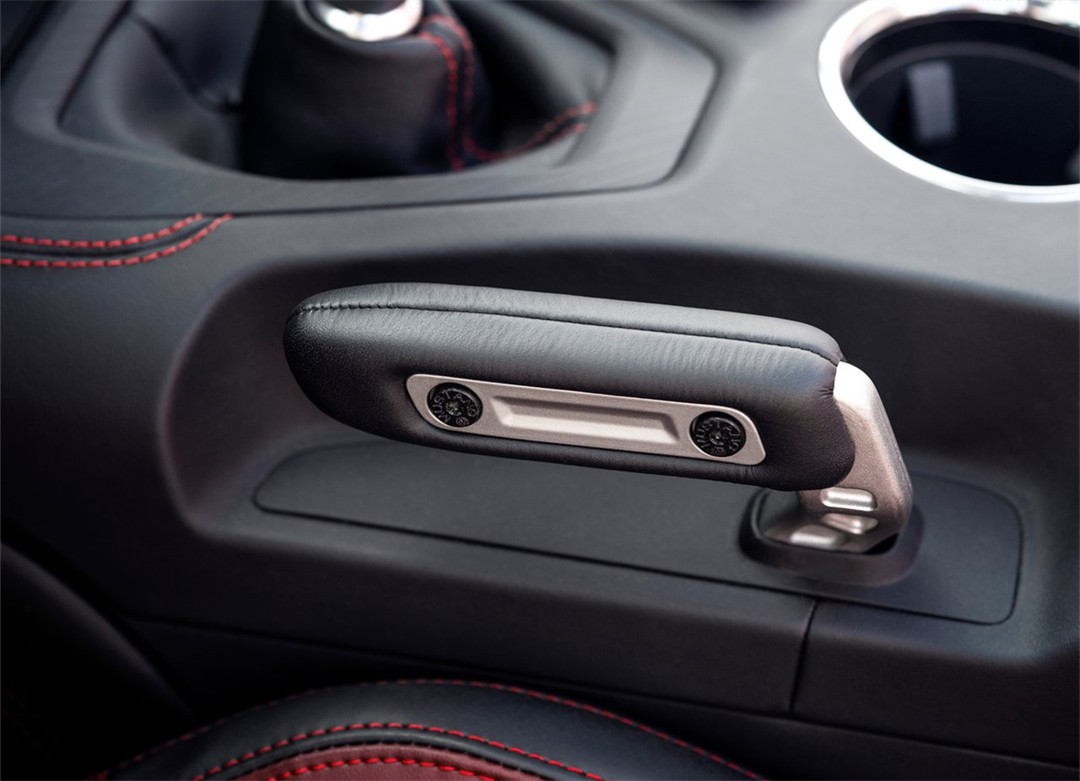 新车取消了机械手刹,不过电子手刹还保留了机械手刹的造型,为的是新开发的漂移刹车系统。在拉动电子手刹的把手时,能产生和拉动机械手刹一样单独制动后轮,让车尾甩起来的效果。这既具备日常的便利性,又保留了传统机械手刹的可玩性,很有创意。