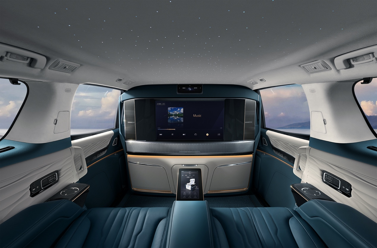 32吋智能大屏可支持wifi,USB和蓝牙连接,也能够支持iOS、安卓系统等多种模式的智能投屏。在屏幕应用商店内,用户能够按照喜好下载多款APP,包括视频、音乐、游戏等,让车内空间秒变私人影院娱乐空间或智能办公室。值得一提的是,乘客可以通过后排座椅8吋智控屏进行操作,其支持方向控制键和触控板控制两种模式,更有高通8155芯片的加持,拥有智能手机般的流畅的操作体验。