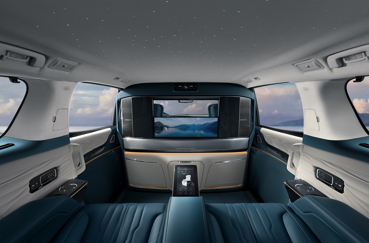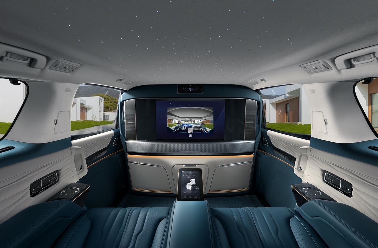 近日,我们从相关渠道获得了一组别克世纪CENTURY的后排座舱图片,以及其一键可升降的豪华智慧幕墙系统的具体功能与参数。