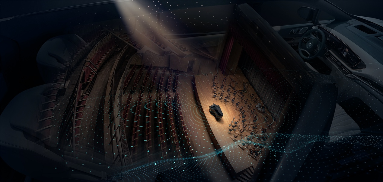 围绕在大屏四周的是Bose Executive Edition悦尊音响系统的阵列音箱,视觉和听觉效果同步拉满。