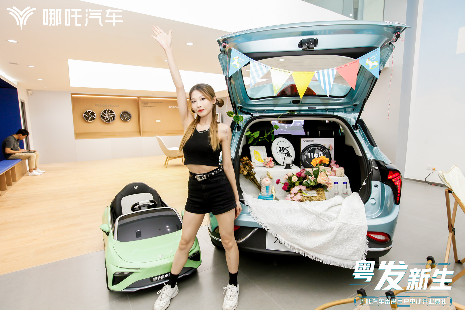 部分哪铁和哪吒汽车营销公司副总裁兼商贸公司副总裁——刘磊先生在现场共同见证了开业仪式。
