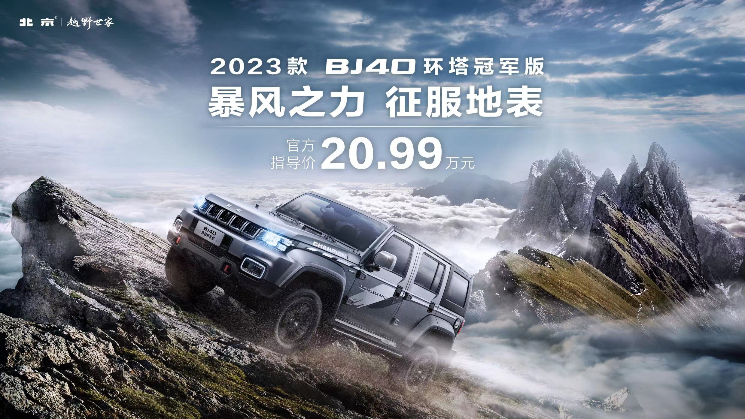 9月27日,在越野圈有着“最强素车”之称的环塔冠军版迎来了2023款焕新上市,新车官方指导价为20.99万元,拥有三大优势和三大升级,同时以全新环塔冠军版为基础,与用户共创打造的官改车型——BJ40可可西里版,同步重磅首发。
