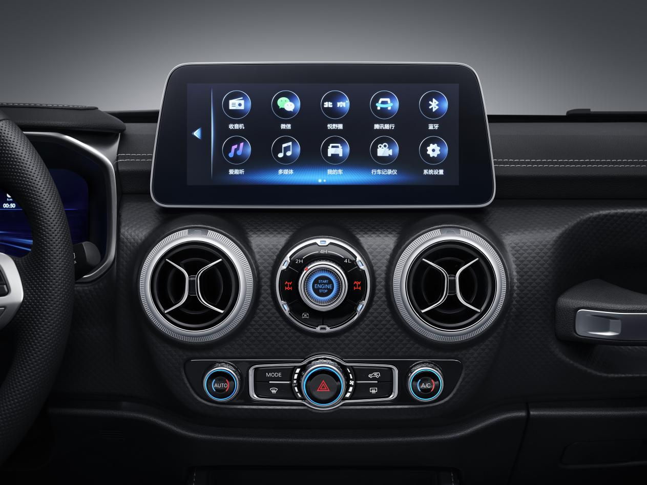 极致的越野性能是环塔冠军版被网友们称作“中国越野最强素车”的重要原因之一,在专业级“三把锁”、领先的车身通过性数据、轻量化前桥、赛车级防滚架以及2.0T+8AT+分时四驱等硬核指标的加持下,素车也能无惧任何路况的挑战。不仅如此,环塔冠军版还有一个“冠军策略脑”,全新悦野车机系统拥有车载微信、腾讯随影、智能语音交互、手机互联等诸多实用功能,并且悦野圈APP不仅可以远程控车,还可以实现APP与车辆的互联,真正打通了人车互联的悦野生态圈。