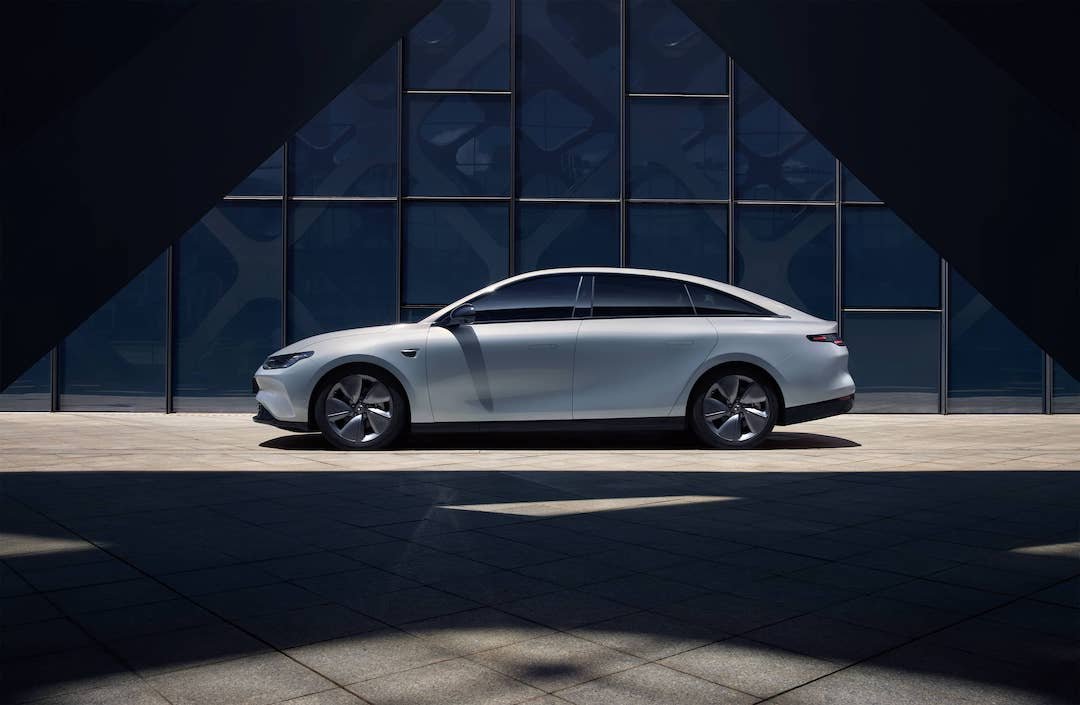 流线型车身设计,让这超五米长的车身显得格外的修长;隐藏式的门把手以及简约圆润的车身,使得整车的风阻系数得到进一步降低。
