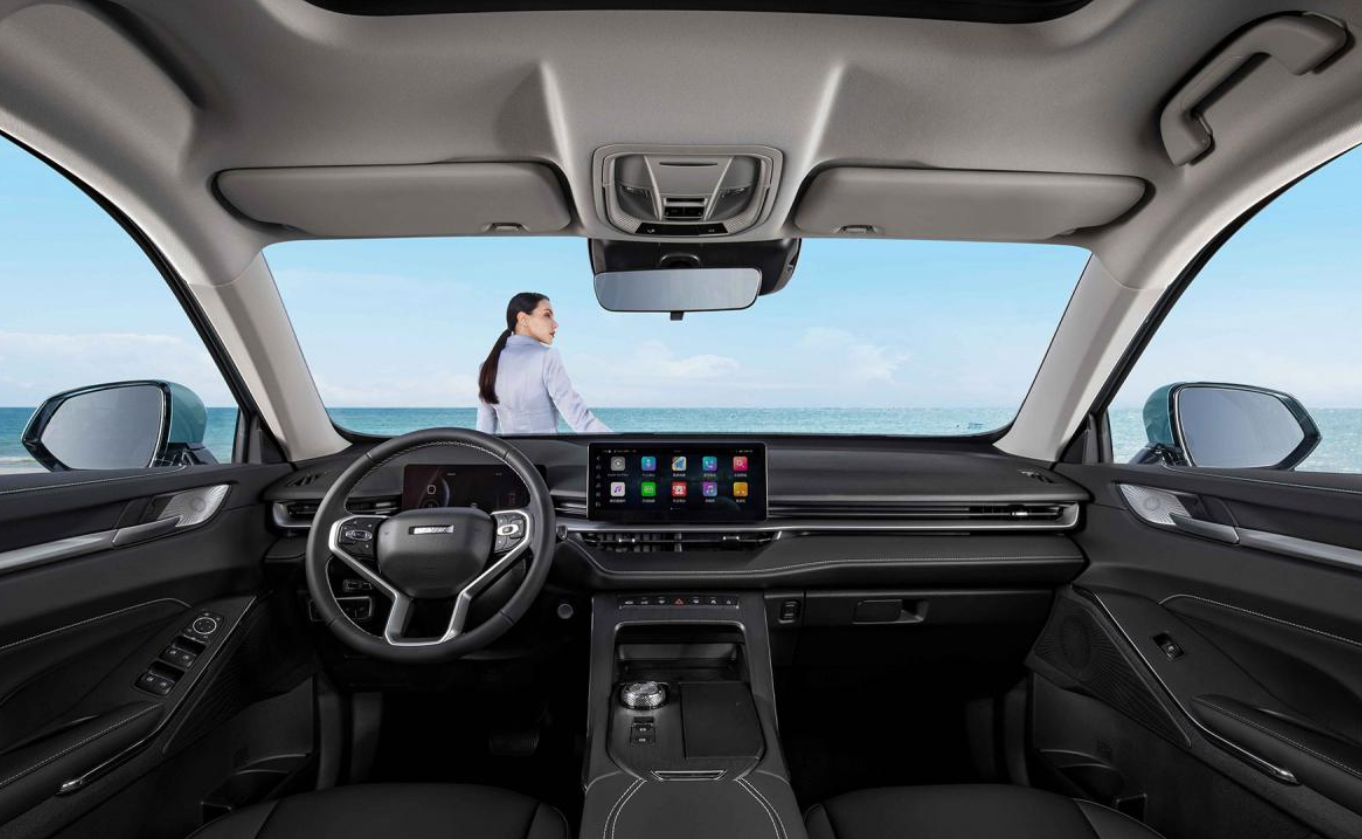 内饰布局与此前的燃油版、混动版车型同出一辙,例如全液晶仪表盘、悬浮式中控大屏和旋钮式换挡挡把等并没有缺席,12.3英寸中控液晶屏内置长城家族最新研发的车机系统,能够有效提升人车交互体验。