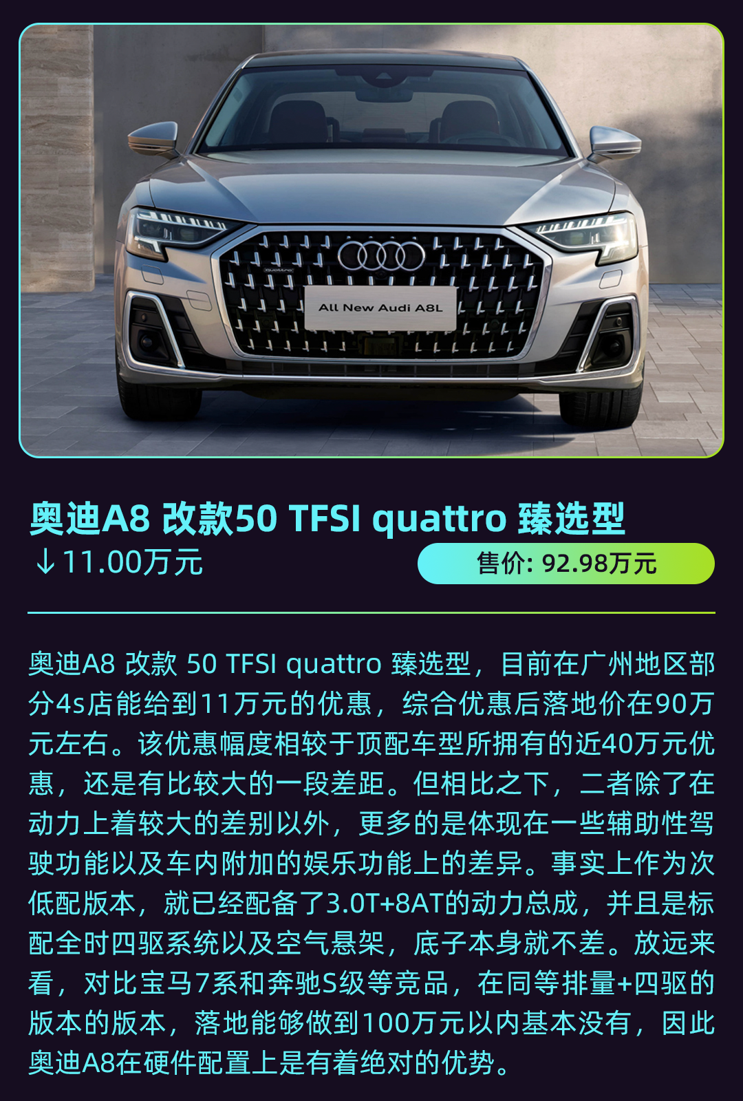 推荐车型:奥迪A8 改款50 TFSI quattro 臻选型