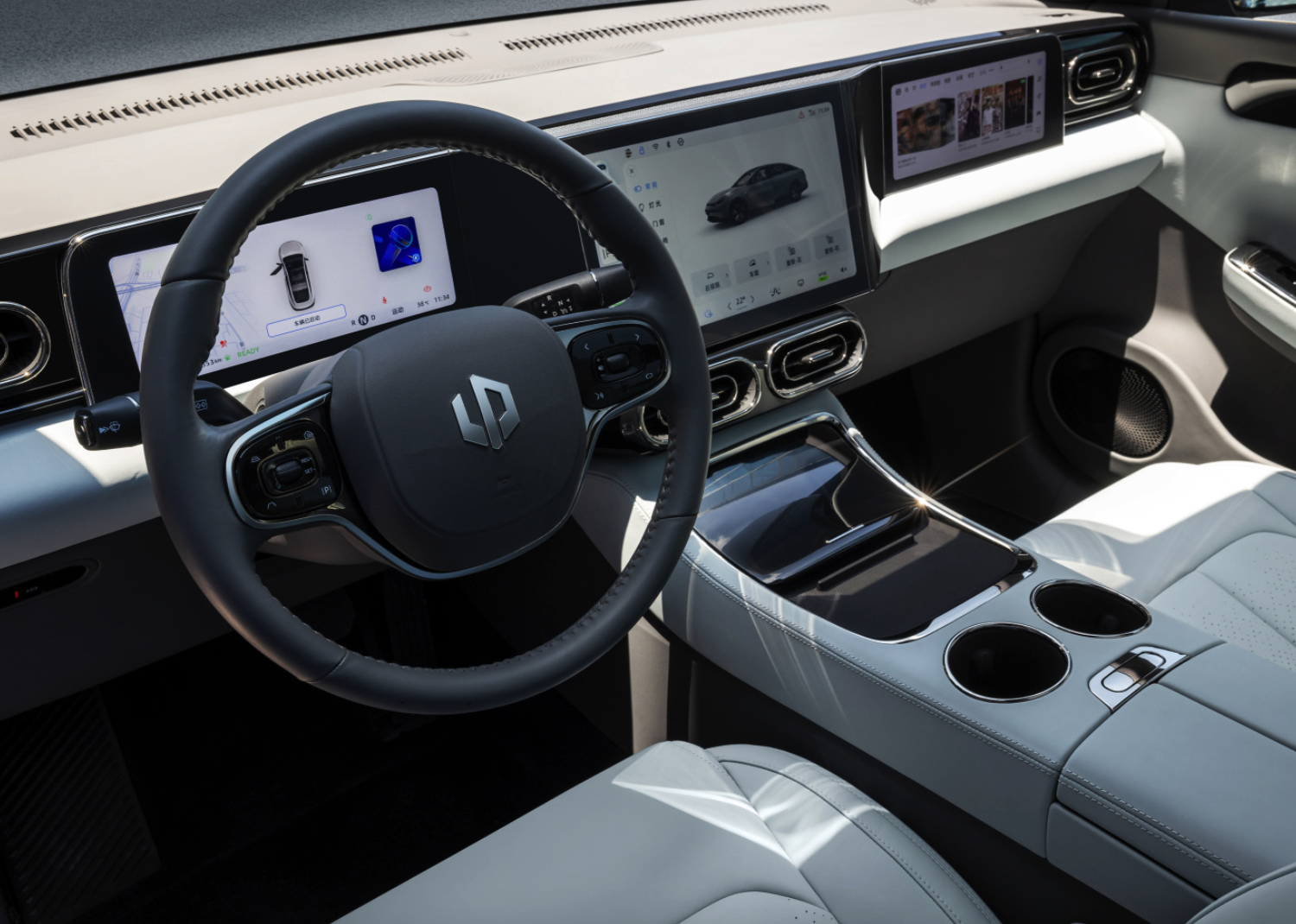 于是零跑C01跟随理想步伐,提供了内饰三大屏的组合,这也是目前20万元内唯一配备如此大屏方案的轿车。
