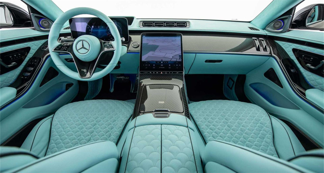 内饰方面,600 Masterpiece采用了大量的碳纤维面板和绿松石色的皮质,车门面板、座椅等位置还有贝壳形状的花纹,展现出了BRABUS极尽奢华的定制化服务。