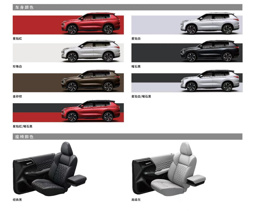 同时,为满足用户对个性的追求,全新欧蓝德对车身色彩进行全面升级。除了珍珠白、曜石黑、金砂棕三种经典车色,还将提供星钻红、星钻白两种星钻动感车色以及星钻白/曜石黑、星钻红/曜石黑两种双色拼色车身,共7种丰富配色可供选择。其中,星钻动感车色以双重漆深加工工艺,在高铬含量的金属漆中加入强光反射铝粉,并通过五层喷涂工艺精心制造,打造出了纯色无杂质的漆面,让车身能在受到光照的情况下,流转出如晶钻般闪耀的光芒,尽显整车高级质感与动感魅力。而内饰也将提供经典黑、高级灰2种配色,给予用户多样化选择。