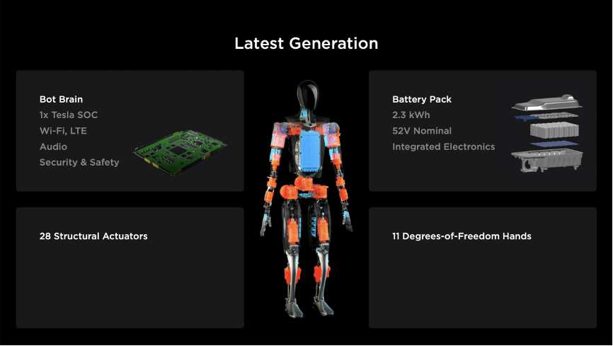 Optimus身体共有28个自由度,采用了更加灵活的弹簧负载设计与6种类型执行器,关节采用仿生学关节设计,模拟人类关节与肌腱形态,手部则采用人体工程学设计,拥有11个自由度。而在“感官”上,在经过完全自动驾驶能力系统的实际应用验证后,特斯拉强大的计算机视觉已可直接应用于机器人。