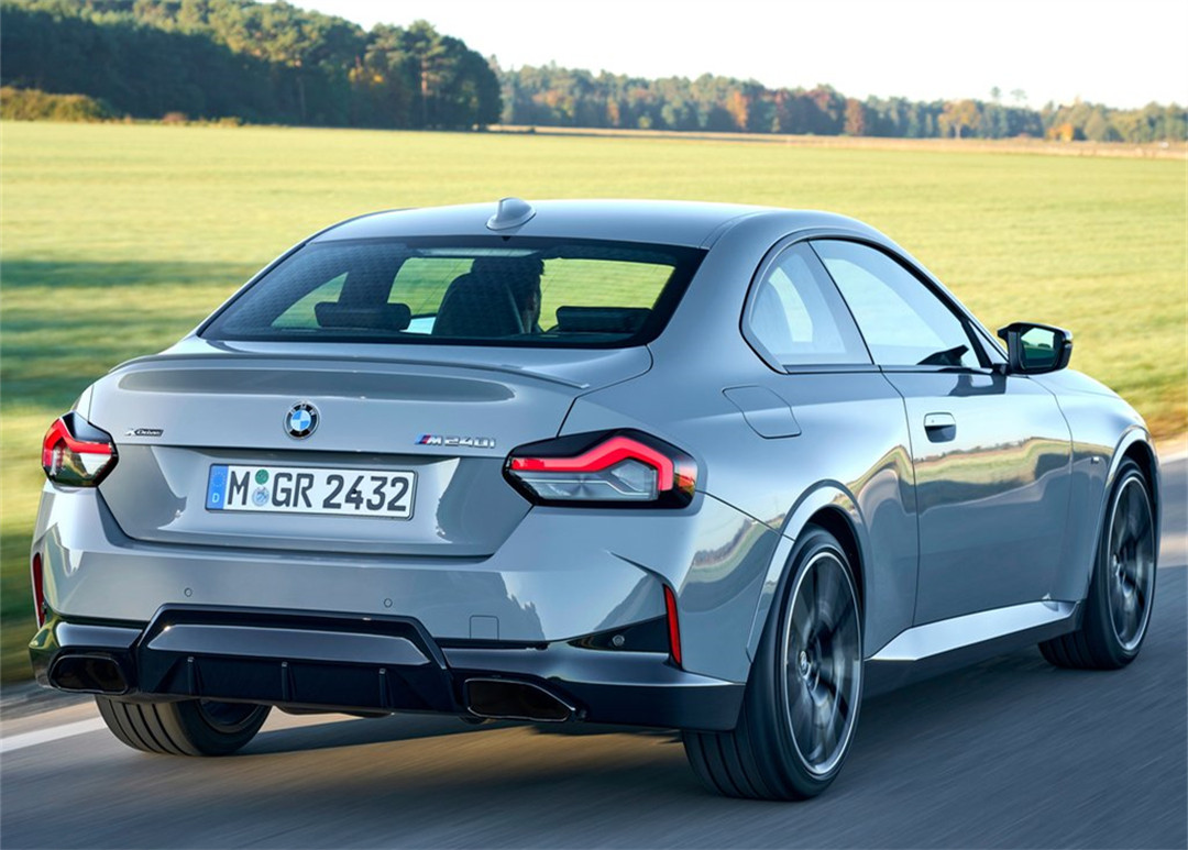 车尾的保险杠造型与车头相呼应,不过尾箱盖上的小压尾居然与普通版的M运动套装是相同的。好在下方不算宽的位置塞下了四个排气管口,跟M3、M4是一样的。