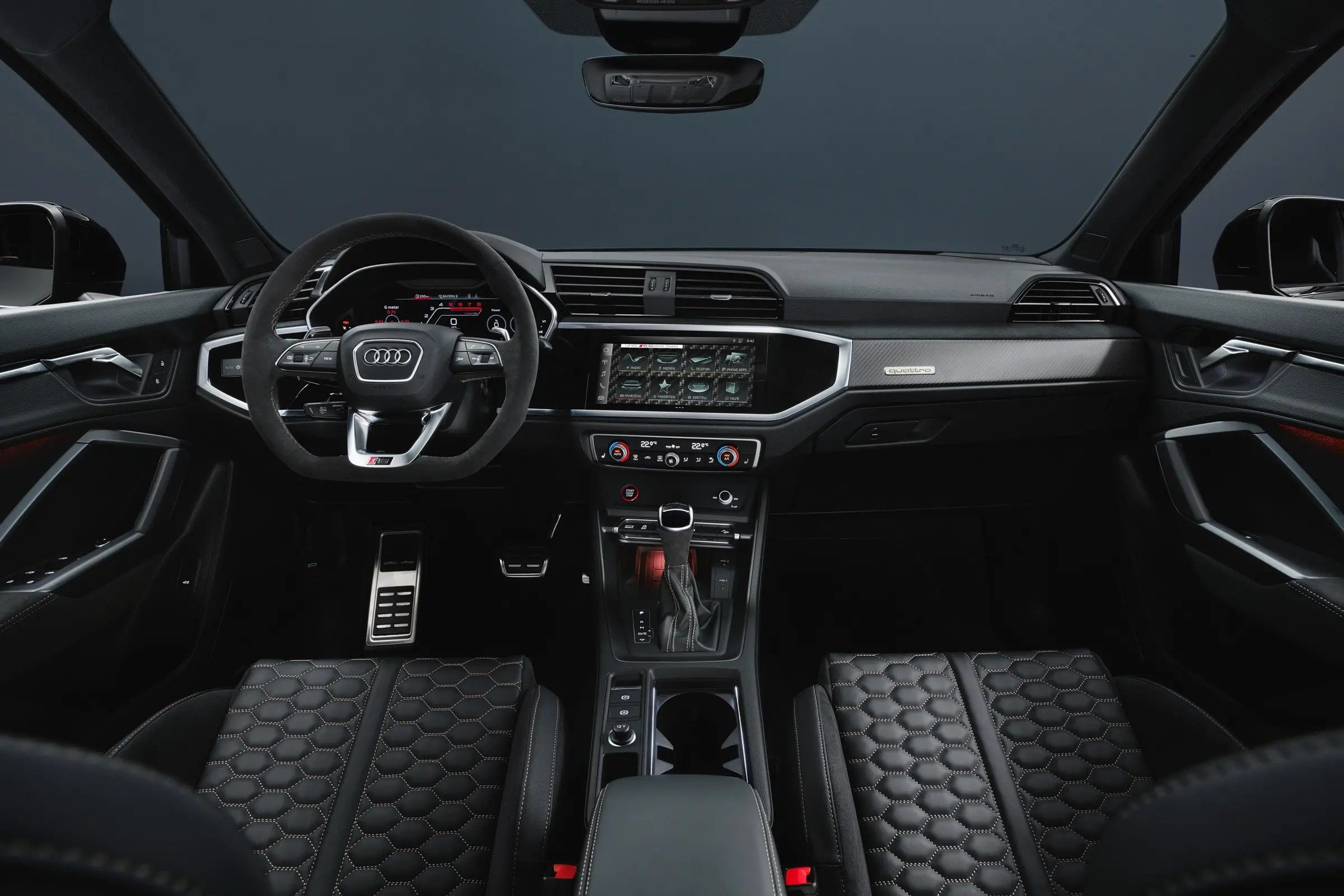 RS Q3限量版车型的内饰看起来同样并没有太明显的改动,和现款的Q3车型没有太大出入。RS车型上常见的碳纤维材质并没有大幅度装备在新车上。