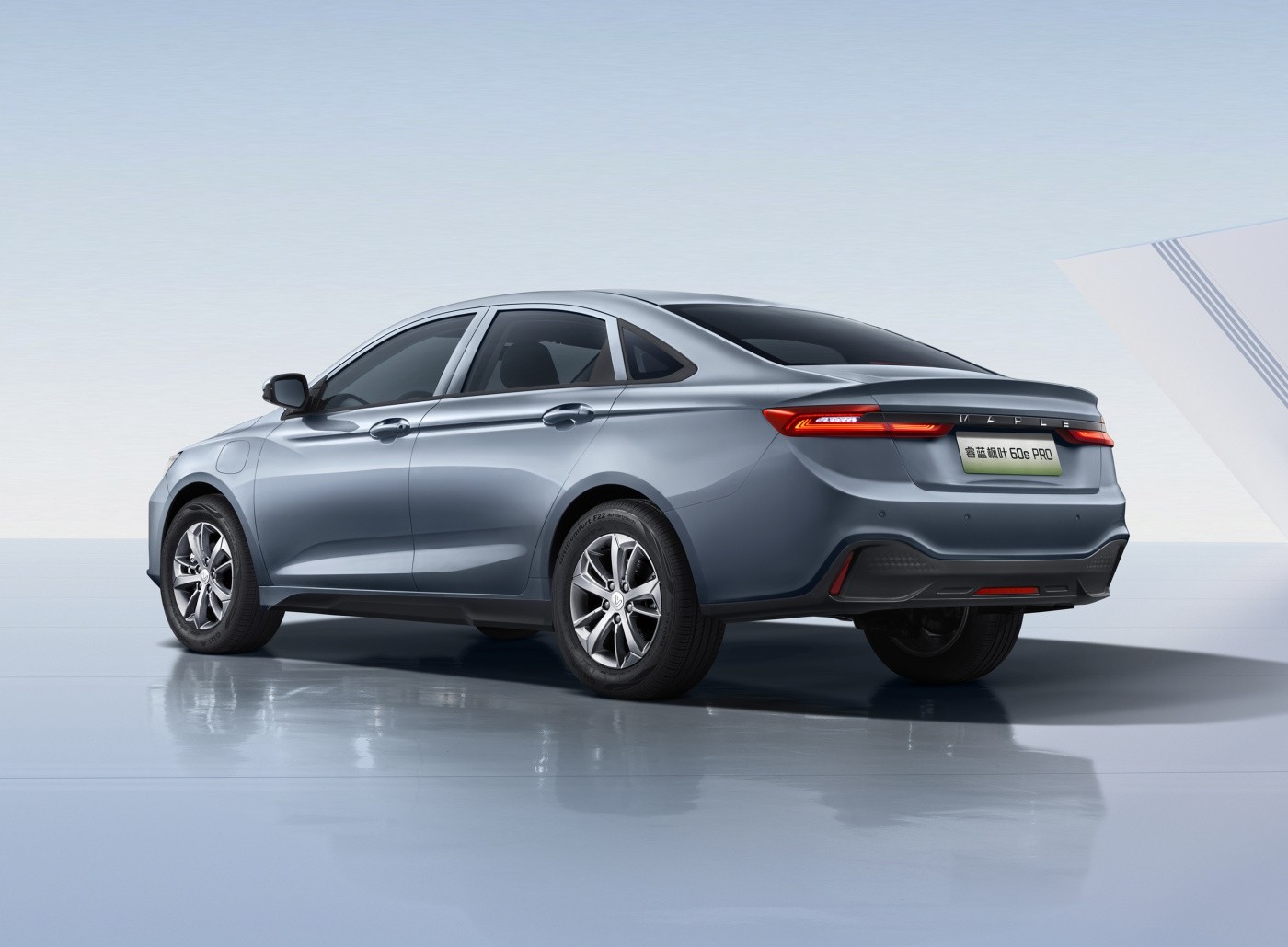 尾部两侧仍然配有分体式灯组,并使用一条熏黑饰板将其连接,有效拉宽车尾视觉宽度,可以发现均与枫叶60s基本一致。