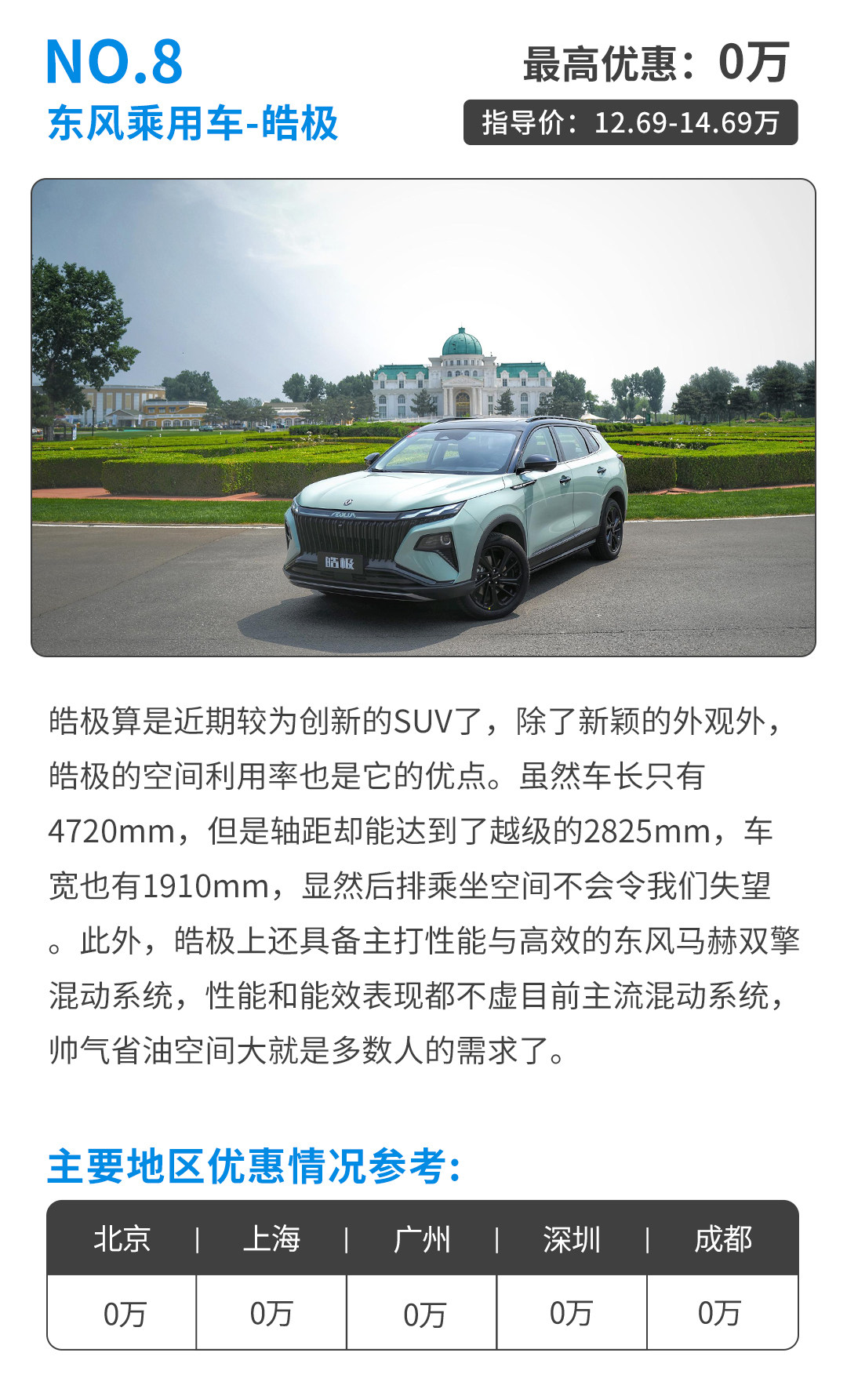 来到紧凑型SUV的定位里,国产SUV车型的性价比优势要更加明显,越来越均衡的综合表现更是让不少消费者为其买单,如今SUV销量榜单上的前五基本都是自主品牌的车型,足以见得国产车型的受欢迎程度。如果不想左挑右选,那就无脑买台国产车型吧,毕竟性价比都不会差到哪里去。