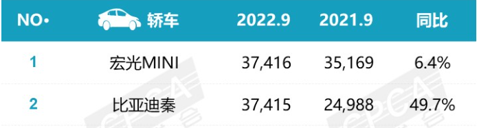比亚迪秦家族在9月份销售了37415辆,只比轿车销冠宏光MINIEV少了1辆。要知道,宏光MINIEV是微型电动车,而秦家族全是紧凑级轿车,它们之间并不存在竞争关系。