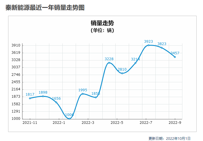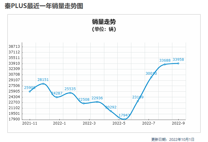 值得一提的是,秦PLUS作为秦家族的中流砥柱,它在9月份的销量高达33958辆。