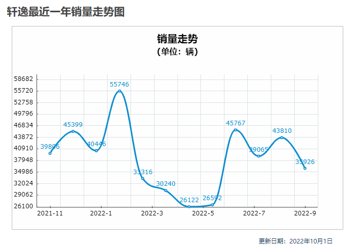 事实上从2021年开始,轩逸的销量成绩几乎都在走下坡路。