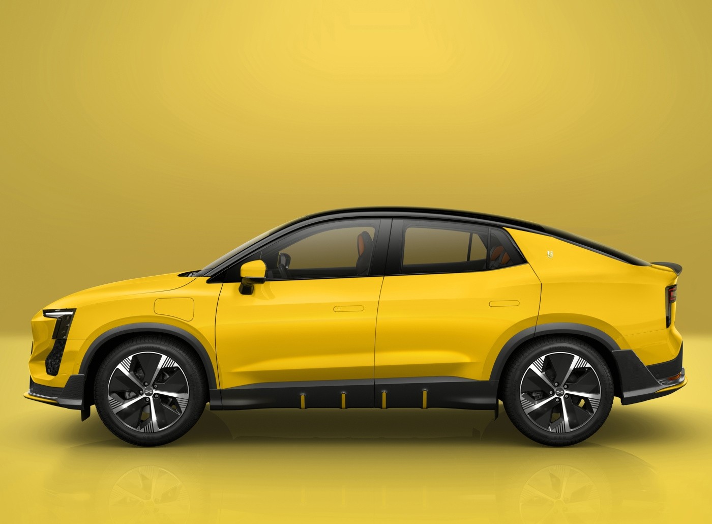 车侧采用时下流行的溜背式造型,锐利的腰线采用分段式处理,与向外突起的轮拱部分相搭配,营造出肌肉感满满的视觉效果。此外,新车还配有隐藏式门把手、低风阻轮毂等流行元素,使车辆的风阻系数低至 0.26Cd,有效提升车辆续航里程。