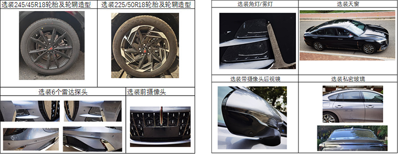 选装配置方面,新车将会提供角灯/雾灯、天窗、带有摄像头的后视镜、后排私密玻璃、雷达探头、前置摄像头以及多款不同样式的轮毂可选。