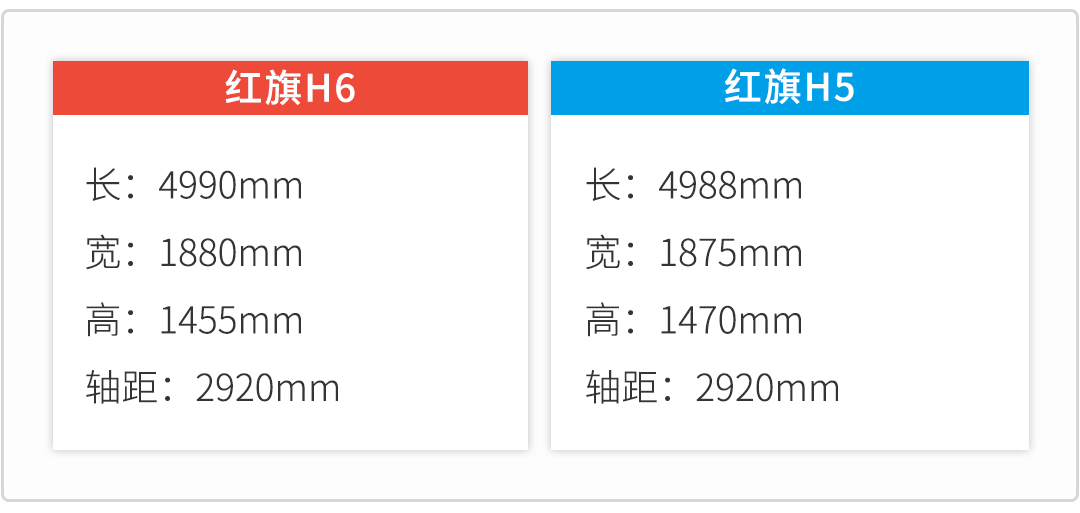 车身尺寸方面,红旗H6的长宽高分别为4990*1880*1455mm,轴距为2920mm。通过数据可了解到,新车的车身尺寸与红旗H5较为相近,因此新车的定位同样是一款中型车。但值得一提的是,它们的轴距仍旧保持一致,预计在空间方面的表现二者不相伯仲。