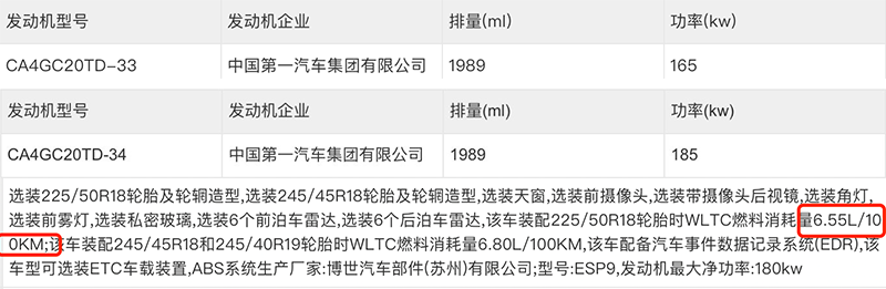动力方面,根据工信部给出的讯息来看,新车将会为其配备的是2.0T发动机(分高低功率),其中高功率版本最大输出功率为185kW,低功率版最大输出功率则为165kW。传动系统方面预计与2.0T版本的红旗H5一样,预计高功率版本配备的是8AT变速箱,而低功率版本则配备7DCT湿式双离合变速箱。
