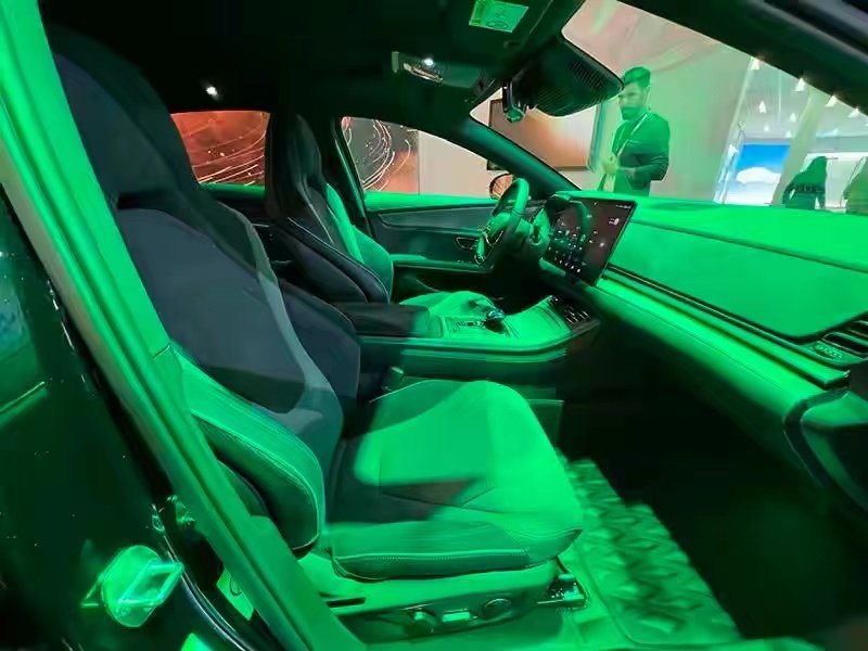 另外,在内饰用料上确实有一定不同,像比亚迪汉欧版车型放弃了钢琴烤漆等材质,而是采用了更具运动感的Alcantara材质,包括中控台面与座椅上的材质,更加强调运动感,这也是迎合欧洲人的用车需求。