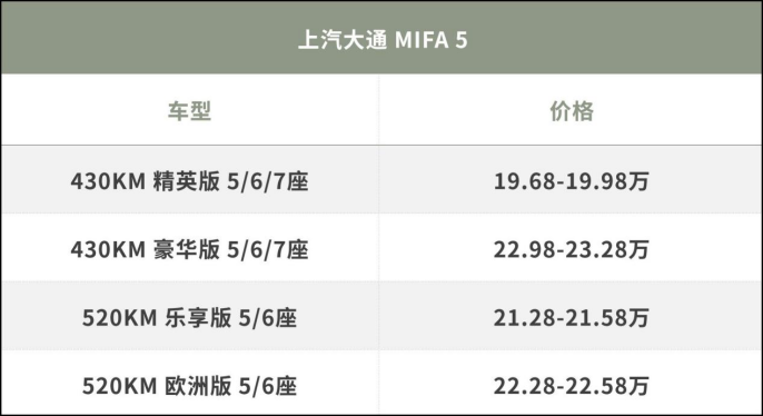 当前市面上续航超过500km的纯电MPV不算多,而考虑到MIFA 5的版本之间差价并不大,所以相比于430km版本我还是更推荐往更高续航版本去考虑,其中好处也不用过多赘述了。