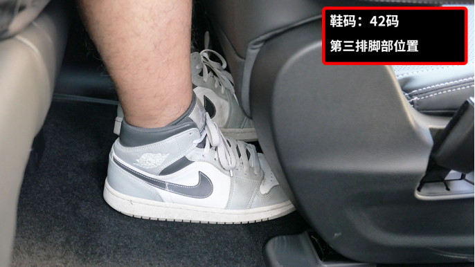 而当二排座椅调节到最后或最前时,分别的腿部空间如图所示。其中二排座椅调到最前时的腿部空间才是大家最关注的,毕竟这能直接决定第三排是否实用,而超过一拳的表现就让我对第三排有了更大的信心了。