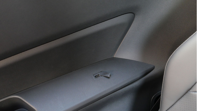 第三排配置除了两边都提供了杯架位置,在右侧还给到一个USB充电口,想象一下,出门旅行小孩子在第三排看手机/iPad就再也不会闹着没电了...