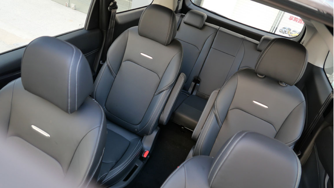 而整体来说,乘坐的舒适度和第二排差别不大,第三排座椅的材质都和全车座椅一样都采用了皮质包覆,并且头部富余空间也足够。