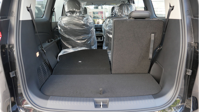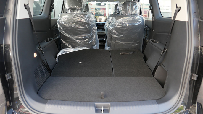 当第三排全放倒后其后备厢容积提升到1162L,地台也接近全平,此时像婴儿车、行李箱甚至是露营装备的摆放就更加不成问题了。
