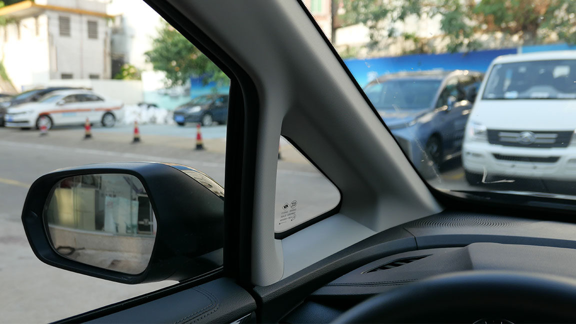 前排值得赞扬的还有A柱三角窗位置,面积做得比较大减小盲区,对于安全性是有所帮助的。